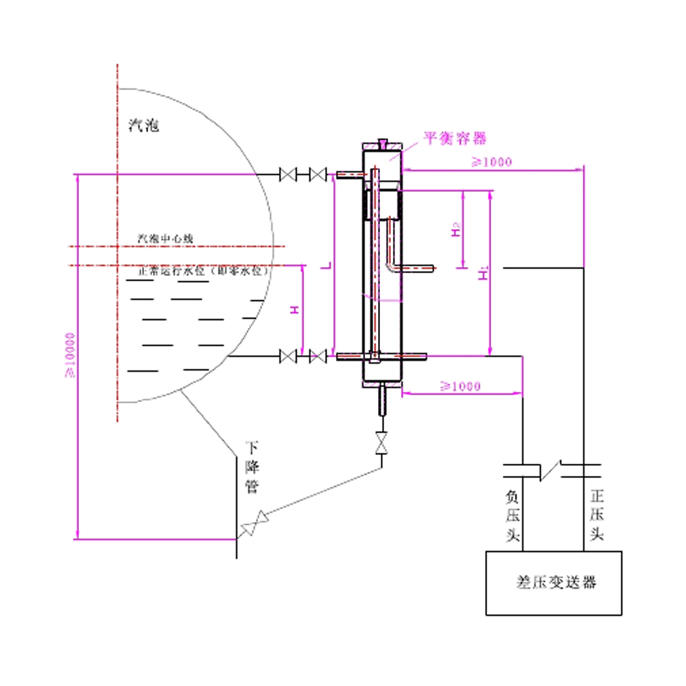 3、平衡容器連接管兩彎接管之間的距離應(yīng)大于1000mm。